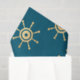 Roues de direction de navire en or sur un arrière - plan bleu/vert. Idéal pour l'art découpage, l'artisanat en papier ou l'emballage de cadeaux.