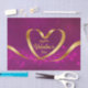 Belle et mignonne illustration de la Saint-Valentin avec un ruban cadeau en forme de coeur doré sur un arrière - plan de bokeh à coeur violet. La typographie moderne saluant à l'intérieur du ruban du coeur.