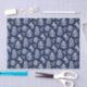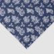 Ce papier de tissu de Noël mignon présente un motif d'éléments de Noël blanc glacé avec un arrière - plan de bois rustique bleu foncé.