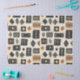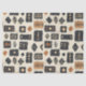 Earthy geometric pattern tissue paper inspired by tribal mudcloth textiles, featuring hand-painted rectangles, diamonds, and triangles in charcoal black and terracotta on a textured beige background. A warm boho design ideal for rustic décor lovers, artisan style fans, and anyone drawn to earthy geometric aesthetics.