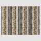 Warm geometric stripe pattern tissue paper featuring tribal-inspired diamonds, zigzags, and textured vertical bands in earthy brown, terracotta, tan, beige, and charcoal tones. A cozy boho design ideal for southwestern décor lovers, rustic style fans, and anyone drawn to earthy, handcrafted aesthetics.