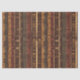 Warm geometric stripe pattern tissue paper featuring tribal-inspired diamonds, zigzags, and textured vertical bands in earthy brown, terracotta, tan, beige, and charcoal tones. A cozy boho design ideal for southwestern décor lovers, rustic style fans, and anyone drawn to earthy, handcrafted aesthetics.