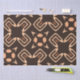 Le produit dispose d'un motif extensible sans soudure avec un arrière - plan brun foncé. Le design comprend des formes géométriques abstraites, dans un orange clair et une touche d'orange foncé. Les éléments sont les suivants : 1. Formes de diamant et de coeur : Des formes en forme de losange avec des bords incurvés, formant une apparence de coeur dans certaines sections. 2. Motifs de flèche : Petites formes de flèche pointant vers l'extérieur, ajoutant un mouvement dynamique à la conception. 3. Formes organiques : formes florales ou foliaires Abstraites dans les diamants, contribuant à la sensation organique du motif. L'esthétique globale est audacieuse et dynamique, captant l'essence du design des années 1970 avec ses tons terre et ses formes abstraites.