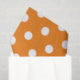 Papier d'emballage orange avec pois blancs pour les vacances. Idée cadeau pour adultes et enfants.