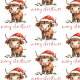 Santa Hat Highland Vache Script Joyeux Noël. Un motif amusant avec une douce vache des montagnes dans son chapeau de Père Noël et Joyeux Noël dans un script élégant.