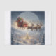 Bring the Magic of Christmas to Life! Step into a whimsical winter wonderland with this stunning 3D-style illustration. Featuring Santa Claus soaring across a starry night sky in his gift-laden sleigh, flying high above a cozy, glowing snowy village. The vibrant colors, magical golden sparkles, and high-fidelity details make this design a true standout for the holiday season