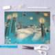 Vintage de la neige de Noël dans le bleu et le blanc.