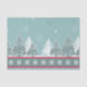 Illustration de scène hivernale avec pins et flocons de neige décoration sur bleu, rouge et blanc rayé arrière - plan