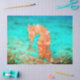 Papier Mousseline Seahorse tropical carribean turquoise orange