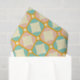 Seamless retro pattern with rounded squares in peach, teal, and cream hues, outlined in orange. Mid-century modern style, conveying a vintage, playful tone.