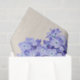 Beau papier de tissu, parfait pour l'emballage cadeau ou la découpage, présentant une lavande vintage et une fleur de jardin Hortensia violette avec feuillage vert contre un arrière - plan blanc cassé crème d'ivoire.