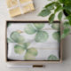 Shamrocks délicats et trèfle tombant du dessus de ce papier de tissu avec perles d'or au fond du trèfle. Idéal pour les projets artistiques de la St Patrick's Day, les projets de découpage et les cadeaux pour la St Paddy's Day.