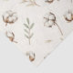 Discover timeless serenity in this delicate watercolor pattern of fluffy cotton bolls bursting from their pods, gracefully scattered among slender sage-green leaves on a soft cream background. The gentle palette of warm beiges, earthy browns, and subtle greens creates a soothing, farmhouse-inspired elegance with a touch of rustic charm.