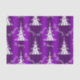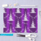 Un papier de mouchoir de Noël violet festif avec un motif de Noël contemporain aux arbres blancs et l'accueil, "Be Joyeux" éparpillé autour d'eux, le tout sur un arrière - plan métallique violet coloré.