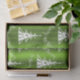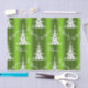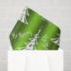 Un papier de tissu vert coloré de Noël avec un motif moderne de sapins blancs de Noël et les mots "Soyez Joyeux" éparpillés autour d'eux, le tout sur un arrière - plan très festif et vert vif.