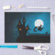 une sorcière volant sur son balai passé la pleine lune avec une maison sombre dans l'arrière - plan et un chat sur la clôture 100% Personnalisation. Cliquez sur le bouton PERSONNALISER pour ajouter, déplacer, supprimer, redimensionner ou modifier les polices ou les graphiques.