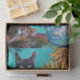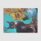 PAPIER MOUSSELINE SOUCHES AVEC CHAT NOIR EN TURQUOISE BLEUE