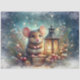 Papier Mousseline Souris et lanterne de vacances rustiques en bois