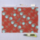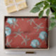 Papier rouge, tissu de Noël avec étoiles de mer et ornements design. Des étoiles de mer Brown et des ornements bleu aqua font un motif de Noël tropical amusant et correspond à notre papier d'emballage.