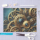 L'horlogerie d'or se dresse contre un arrière - plan turquoise dans cet élégant design steampunk apportant une touche industrielle vive à l'art moderne. C'est parfait pour les métiers comme la découpage !