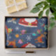 Ajoutez une pop ludique de la joie de vivre à votre emballage cadeau avec ce papier de tissu festif Rhymington avec les personnages adorés de Super Simple Songs! Contre un arrière - plan bleu profond, ce motif fantaisiste comprend des amis de Rhymington habillés de chapeaux de Père Noël, de foulards et de bois de rennes, ainsi que des ornements colorés, des sucres de canne, des cadeaux et des flocons de neige. Parfait pour garnir des sacs cadeaux, envelopper des objets délicats ou ajouter une couche extra spéciale à votre emballage de vacances, ce papier de tissu apporte un plaisir lumineux et amical pour les enfants à chaque fête.