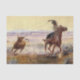 Charles (CM) Russell, le "cow-boy artiste", a réalisé plus de 2 000 peintures de cow-boys, d'indiens et de paysages dans l'ouest des États-Unis. Il vivait et travaillait chez les cow-boys et la tribu des Blood Indian dans ses jeunes années. Ce tableau s'appelle "Sur l'étang" et représente un cow-boy à cheval sur un bras de mer évadé.