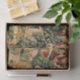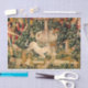 Cette tapisserie de licorne est une reproduction améliorée de la tapisserie "L'Unicorne est trouvé", qui est la deuxième tapisserie d'une série de sept tapisseries médiévales qui présente la licorne mythique.La série est intitulée "La Chasse de l'Unicorne" qui sont aussi appelées les Tapisseries de l'Unicorne". Les tapisseries ont été créées de 1495 à 1505. Cette tapisserie de Unicorn est trouvée montre un groupe de nobles et de chasseurs médiévaux, ainsi que toutes sortes de lions féroces et léopards. Il y a une licorne à l'avant, une belle licorne blanche, qui a sa corne pointée vers le bas tandis qu'elle s'agenouille. Il y a une fontaine médiévale entre la licorne et les chasseurs.