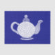Théière blanche en bois dessinée par l'artiste WindyDesign sur papier bleu marine. Papier de tissu parfait pour le don, la décoration et les projets.
