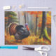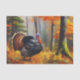Papier imprimé vibreux avec une grande dinde qui marche dans une forêt automnale. Parfait pour les projets d'artisanat de découpage thématiques automne et Thanksgiving et emballage cadeau.