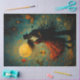 Step into a whimsical world where love meets the surreal. This enchanting decoupage paper features a couple locked in an intimate embrace beneath a glowing moon, surrounded by floating objects—a rocking horse, vintage chairs, ribbons, butterflies, and a teacup. His form dissolves into the night while her red dress flutters like fire. Perfect for dreamy mixed media, altered books, romantic crafts, or magical storytelling projects.