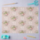Papier Mousseline Théière Fleurs Roses et Papillons Monogramme