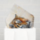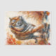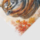Le papier de tissus présente l'aquarelle d'un tigre majestueux qui traverse un habitat naturel pendant la saison d'automne. Le félin féroce se fraye un chemin au-dessus d'une flaque peu profonde, entourée de feuilles d'automne. Couleurs chaudes automnales dans les tons orange, rouge et marron.