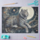 Enveloppez vos cadeaux ou créez des objets de découpage uniques avec ce papier de tissu de tigre d'inspiration bohémienne. Ce papier de tissu d'aquarelle créé numériquement un tigre à l'esprit libre niché dans un arbre mystique, avec des fleurs fantaisistes. Une lune lunaire grace l'arrière - plan. Cette oeuvre d'IA a été créée par Susang6.