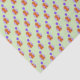 Papier de tissu de cinquième anniversaire en vert clair, avec un tigre amical. Le tigre a un ballon violet avec le numéro 5 dessus.