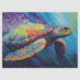 Aquarelle tortue de mer nageant à travers l'océan, oeuvre originale de Nicole.