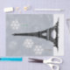 Ce magnifique design de vacances à thème parisien présente la Tour Eiffel dans une scène enneigée avec des ballons de flocon de neige.