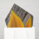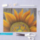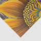 Une représentation abstraite stylisée d'un tournesol aux lignes épaisses et aux contrastes de couleurs frappants. Le tournesol lui-même, dans les nuances d'or, de jaune et d'oranges, est placé sur un bel arrière - plan de barnboard rustique.