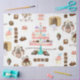 ARRIÈRE - PLAN BLANC AVEC PRINKLES BLEUS AQUA | Des gâteaux sucrés avec une tour de cupcakes, gâteaux et chocolats faits à la main et le texte typographique qui dit : "Tant de desserts, si peu de temps !" Peint en aquarelle et conçu en un motif à demi-goutte qui est entièrement extensible. Arrière - plan blanc avec arrosage bleu. Toutes les oeuvres ont été peintes en aquarelle et dessinées graphiquement par Audrey Jeanne Roberts, artiste et designer de renommée internationale.