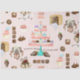 Des gâteries sucrées avec une tour de cupcakes, gâteaux et chocolats faits main et le texte typographique qui dit : "Tant de desserts, si peu de temps !" Peint en aquarelle et conçu en un motif à demi-goutte qui est entièrement extensible. Arrière - plan rose pâle et doux avec des arroses blanches. Toutes les oeuvres ont été dessinées graphiquement par Audrey Jeanne Roberts, artiste et designer de renommée internationale, copyright.