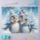 Trois adorables pingouins se dressent dans des casquettes d'hiver festifs et des écharpes colorées. Leurs grands yeux ronds brillent de joie, tandis que leurs ventres blancs moelleux contrastent avec le sapin bleu vif décoré de lumières scintillantes. Les pingouins sourient joyeusement et semblent prêts à célébrer la magie de la saison des fêtes. Tout autour, des flocons de neige délicats dansent dans l'air, tandis que des étoiles scintillantes brillent dans le ciel, créant une atmosphère chaleureuse et festive. Ce design reflète parfaitement l'esprit de Noël - plein de joie, d'amitié et d'émerveillement hivernal !