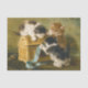 Papier Mousseline Trois chatons avec une corbeille et un ruban bleu,