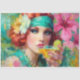 Sirotez l'été avec ce papier tissu de découpage audacieux avec une tête rouge glamour dans les fleurs tropicales et un bandeau turquoise, en tenant un cocktail de martini citron doré. Des fleurs d'hibiscus et des textures peintes sont le cadre idéal pour vos travaux d'été, les améliorations du panier à barres, les plateaux de fête ou les pages de journaux de jonc de plage. Un air rétro pur et une élégance insulaire. Copyright Hautegraphique