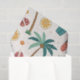 Bright tropical pattern tissue paper featuring palm trees, surfboards, citrus slices, flip flops, and fruity drinks in a fun summer-inspired style. Ideal for beach lovers, surfers, vacation fans, and anyone who loves colorful tropical aesthetics.