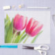 Papier Mousseline Tulipes roses avec Feuille vert photo