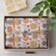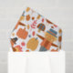 Papier à papier tressé avec un motif d'automne saisonnier, maïs, champignons et flore. Avec des dindes et des épouvantails pour honorer la tradition Thanksgiving.
