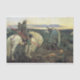Ce dessin présente une peinture de l'artiste russe Viktor Vasnetsov (1848-1926), spécialisé dans les sujets mythologiques et historiques. Il représente un chevalier à cheval, un héros dans un moment de réflexion en regardant une pierre inscrite avec les mots suivants : "Si vous allez droit devant, il n'y aura pas de vie; il n'y a aucun moyen d'avancer pour celui qui voyage au-delà, passe devant ou passe devant." Le chevalier est sur un cheval blanc et il y a un corbeau menaçant volant à côté de la pierre. Il y a aussi des os et un crâne éparpillés à travers la steppe. Le soleil se couche de jaune vif à l'horizon. La solitude du cavalier fort et héroïque sur le cheval prête une majesté épique au paysage. L'oeuvre d'origine a été peinte par Viktor Vasnetsov en 1878 et elle est aujourd'hui conservée au Musée russe de Saint-Pétersbourg.