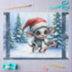 Un elfe de Noël avec Sucre de canne. Donnez vie à la magie des vacances grâce à cette oeuvre de Noël unique : un elfe fantaisiste à la peau grise portant un chapeau de Père Noël rouge et blanc classique. Avec de grands yeux expressifs, il tient un personnel de sucre de canne rayé contre un paysage hivernal enneigé rempli d'arbres à feuillage persistant. Ce design festif et magique reflète l'esprit joyeux de Noël.