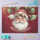 Un faux Santa Claus à la vapeur contre un arrière - plan rouge profond orné de feuilles saints et de baies. Père Noël porte un casquette rouge avec garniture blanche et une paire de lunettes à la vapeur aux accents dorés. Sa barbe blanche et ses joues roses ajoutent à son apparence joyeuse. Les mots "MERRY CHRISTMAS" sont écrits dans une police décorative au bas de l'image.