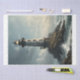 Papier Mousseline Un phare dans une mer orageuse avec mouette -