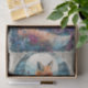 Une composition intéressante - un renard à la fourrure qui offre des allures de cubisme, amiste un champ de fleurs et une immense lune, avec une arcade d'ornements.